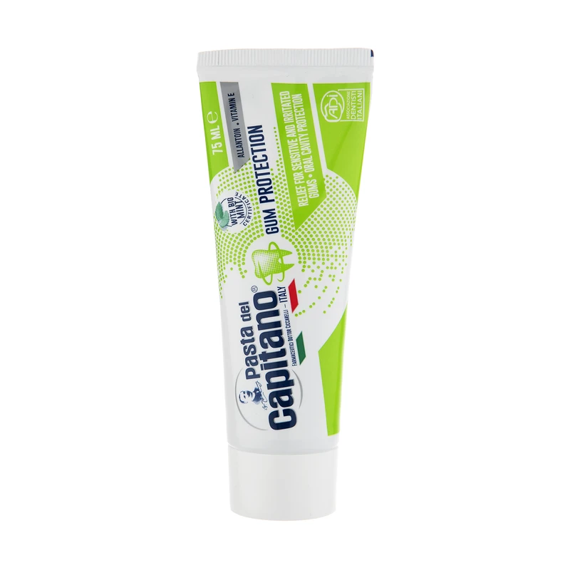 - خمیردندان پاستا دل کاپیتانو مدل محافظ لثه حجم 75 میلی لیتر از پوسیدگی دندان جلوگیری و آن را به تعویق می اندازد. همچنین این خمیر دندان بوی بد دهان را برطرف، از رشد میکروب و باکتری ها در دهان پیشگیری و باعث خوشبو شدن آن می شود. پاستا دل کاپیتانو به شدت به افرادی که از ملتهب و تحریک شدن لثه و دندان های حساس و مستعد پوسیدگی رنج می برند توصیه می شود. به علاوه دهان و دندان را به طور کامل ضد عفونی می کند. در ادامه توضیحات، به بررسی ترکیبات خمیر دندان محافظ لثه پاستا دل کاپیتانو می پردازیم: