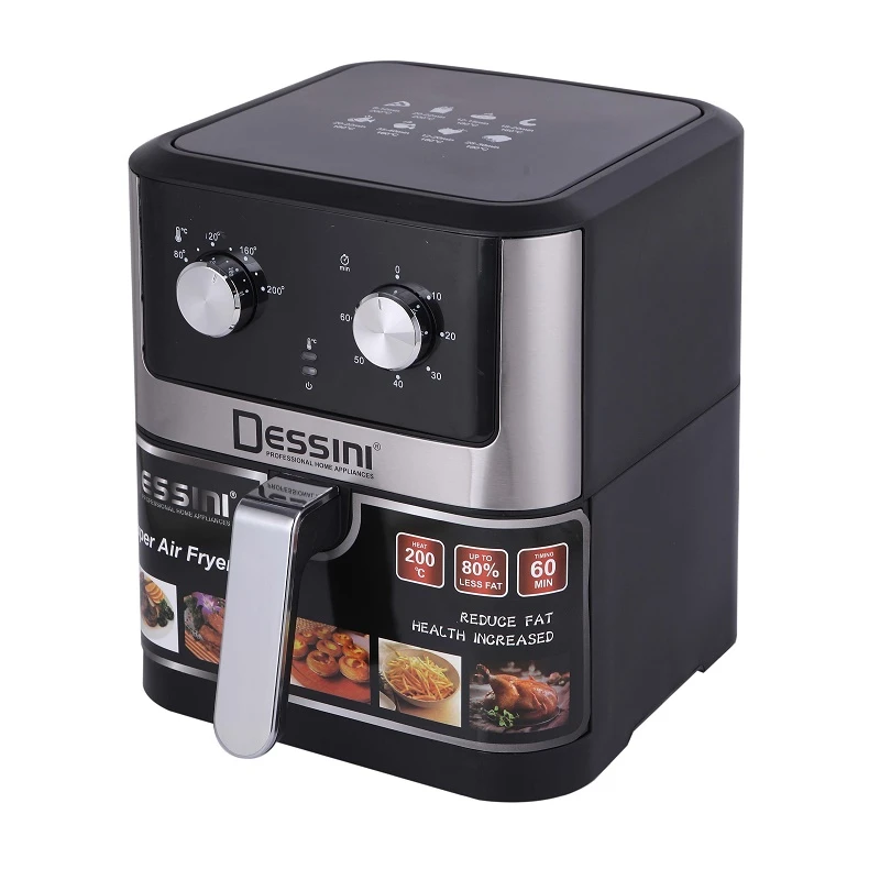 سرخ کن بدون روغن دسینی مدل DS-822 با توان 1500وات و ظرفیت 7 لیتری یکی از جدیدترین سرخ کن های بدون روغن شرکت دسینی میباشد و جز سرخکن های بزرگ با ظرفیت بالا است که برای خانوار با تعداد بیشتر یا مهمانی ها بازدهی مطلوبی دارد و قابلیت تنظیم دما از 80 الی 200 درجه سانتی گراد و تنظیم زماناز صفر الی 60 دقیقه را داراست.این دستگاه قابلیت سرخ کردن انواع مواد غذایی را دارد با آن می توانید انواع غذاهای خوشمزه را تهیه کنید .استفاده از این سرخ کن باعث عدم استفاده از روغن های خوراکی مضر شده که علاوه بر صرفه جویی اقتصادی خانواده ها ،برای کسانی که بیماری چربی دارند و از غذاهای پرچرب خودداری میکنند نیز بسیار مناسب می باشد. توزیع یکنواخت حرارت این دستگاه، موجب پخت بهتر مواد غذایی در کمترین زمان ممکن می گردد و زمان را برای شما میخرد تا به راحتی بتوانید به کارهای شخصی خود برسید. دستگاه سرخ کن رژیمی دسینی مدل DS-822 از مواد سازنده بسیار عالی و با کیفیت ساخته شده است و نمای روبروی بدنه از جنس استیل ضدزنگ بوده و مقاوم در برابر ضربه و حرارت ساخته شده است. بطوریکه بدنه در حین کار داغ نمی شود و می توان به راحتی و ایمن آن را لمس کرد . این محصول نه تنها بعلت نمای مشکی استیل بودن آن جلوه ای با شکوه به آشپزخانه تان هدیه می دهد. بلکه می توانید مدت های طولانی از آن استفاده کنید.دسینی شرکت ایتالیایی است که با تولید محصولات با کیفیت و متنوع در زمینه لوازم خانگی، نقش بسزایی را در بازار داخل و خارج از کشور ایفا می کند. گفتنی است، بسیاری از کالاهای این برند در کشورهایی همچون ایران، ایتالیا، ترکیه و اسپانیا و…با بهترین کیفیت و متریال نیز ساخته و عرضه می شوند.برای جلوگیری از چسبیدن مواد غذایی هنگام سرخ شدن.ظرف آن از جنس تفلون متحرک طراحی گردیده تا شستشوی آن نیز آسان و راحت تر گردد.سیستم سرخ کن رژیمی دسینی مدل DS-822 دارای قابلیت ها و امکانات بسیار پیشرفته ای می باشد. که با استفاده از دماهای مختلف پختن غذاهای متنوع و خوشمزه را امکان پذیر می کند. این سیستم را برای تهیه غذاهای سرخ کردنی و فست فودهای آماده بسیار ایدهآل است. و در مدت زمان اندکی مواد غذایی را آماده می سازد.