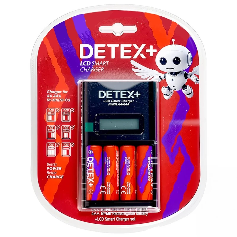 شارژر باتری دتکس پلاس مدل LCD+ به همراه 4 عدد باتری قلمی قابل شارژ