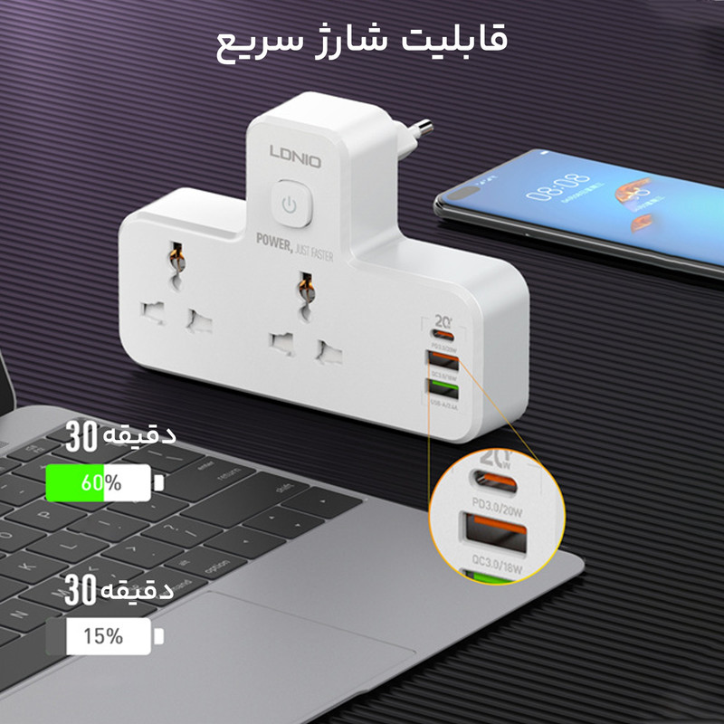 شارژر دیواری و چند راهی برق الدینیو مدل SC2311