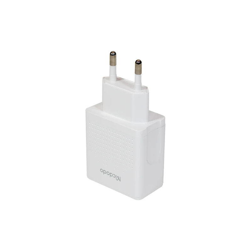 داشتن یک شارژر دیواری با کیفیت میتواند علاوه بر حفظ سلامت باتری گوشی موبایل، زمان شارژ شدن باتری گوشی را هم کاهش دهد. یکی از محصولات باکیفیت و فوقالعاده مطلوب موجود در بازار، توسط کمپانی مک دودو با نام شارژر دیواری مک دودو مدل CH-3970 طراحی و روانه بازار شده است. با استفاده از شارژر دیواری مک دودو مدل CH-3970 که از سری محصولات جدید کمپانی «Mcdodo» است میتوانید باتری انواع گوشیهای موبایل و دستگاههای هوشمند خود را شارژ کنید. شدت جریان خروجی این شارژر دیواری 2.4 آمپر است. این محصول دارای دو درگاه خروجی USB است. مقدار ورودی این محصول AC 100-240~50/60Hz و خروجی آن نیز 5V-2.4A است. برای استفاده از این شارژر دیواری کافی است آن را به طور مستقیم به پریز برق خانه یا محل کارتان متصل کنید؛ سپس گوشی موبایل یا دیگر دستگاههای سازگار را با استفاده از یک کابل USB به خروجی شارژر متصل کرده و منتظر بمانید تا باتری آن شارژ شود. جنس شارژر دیواری مک دودو مدل CH-3970 از پلی کربنات ضد حریق با کیفیت بالا ساخته شده است. این شارژر با ابعاد 73.2*26*49.2 میلیمتر و وزن 54 گرم از محصولات سبک وزن و مناسب جهت حمل به شمار میرود. این محصول در رنگ سفید به بازار عرضه شده است. یکی از نکات قابل توجه در این محصول کابل شارژ و انتقال اطلاعات لایتنینگ همراه آن است که با جنس پلاستیک PVC و با طول 1 متر به خوبی رضایت کاربران را دریافت کرده است.