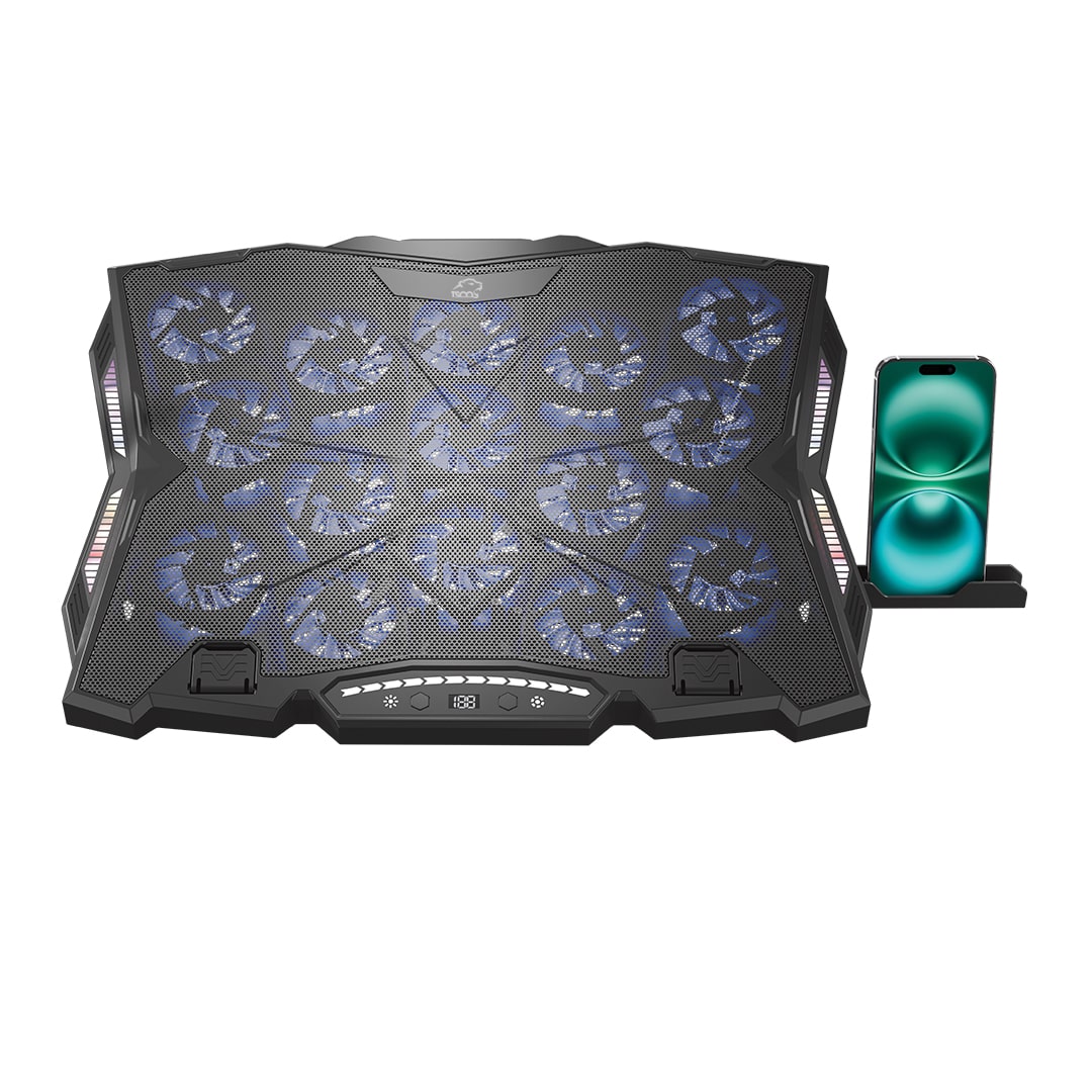 یکی از برجسته‌ترین قابلیت‌های مدل GCLP 3143، بهره‌مندی از ۱۵ عدد فن قدرتمند است که در قالب یک ساختار متقارن و مهندسی‌شده، جریان هوای گسترده‌ای را در تمام سطح لپ‌تاپ پخش می‌کنند. فن‌های کول پد تسکو GCLP 3143 از سرعتی بین 1650 تا 2550 دور در دقیقه برخوردار هستند. این بازه گسترده، این امکان را به کاربر می‌دهد که با توجه به میزان بار حرارتی سیستم، سرعت دلخواه را انتخاب کند. در قسمت جلویی کول پد، یک نمایشگر LCD تعبیه شده است که اطلاعات مربوط به وضعیت فن‌ها، سطح روشنایی RGB و سطح دما را در لحظه نشان می‌دهد. یکی دیگر از نقاط قوت GCLP 3143، وجود ۱۵ چراغ LED RGB است که همراه با فن‌ها روشن می‌شوند و جلوه‌ای فوق‌العاده به میز کار یا محیط گیمینگ می‌بخشند. تسکو در این مدل از سیستم تأمین برق بهینه‌ای استفاده کرده است. GCLP 3143 با ولتاژ DC 5V و توان مصرفی بین 3.75 تا 9 وات کار می‌کند و از طریق کابل Type-C تغذیه می‌شود. همچنین، وجود ۲ پورت USB این امکان را فراهم می‌کند تا کاربران بتوانند دستگاه‌های جانبی مثل ماوس، کیبورد یا هاب‌های دیگر را نیز به آن متصل کنند. این کول پد با ۹ سطح قابل تنظیم ارتفاع طراحی شده تا کاربران بتوانند نمایشگر لپ‌تاپ را در زاویه‌ای ایده‌آل قرار دهند. این ویژگی، هنگام کار یا بازی‌های طولانی‌مدت، نقش مهمی در جلوگیری از خستگی گردن و شانه‌ها دارد. مکانیزم تنظیم ارتفاع بسیار روان و دقیق طراحی شده و در پایین‌ترین سطح نیز کول پد کاملاً پایدار باقی می‌ماند. در بخش جلویی کول پد، یک نمایشگر دیجیتال شفاف قرار گرفته است که اطلاعات کلیدی مثل سرعت فن، وضعیت نورپردازی و سطح تنظیم ارتفاع را نمایش می‌دهد. در کنار خود کول پد، داخل بسته‌بندی محصول یک پایه نگهدارنده موبایل قرار دارد که به‌راحتی در قسمت کناری کول پد متصل می‌شود. همچنین، یک کابل Type-C با روکش کتان برای انتقال برق و اتصال به منبع تغذیه، و یک آداپتور EU با ولتاژ 12 ولت نیز همراه محصول ارائه شده است.
