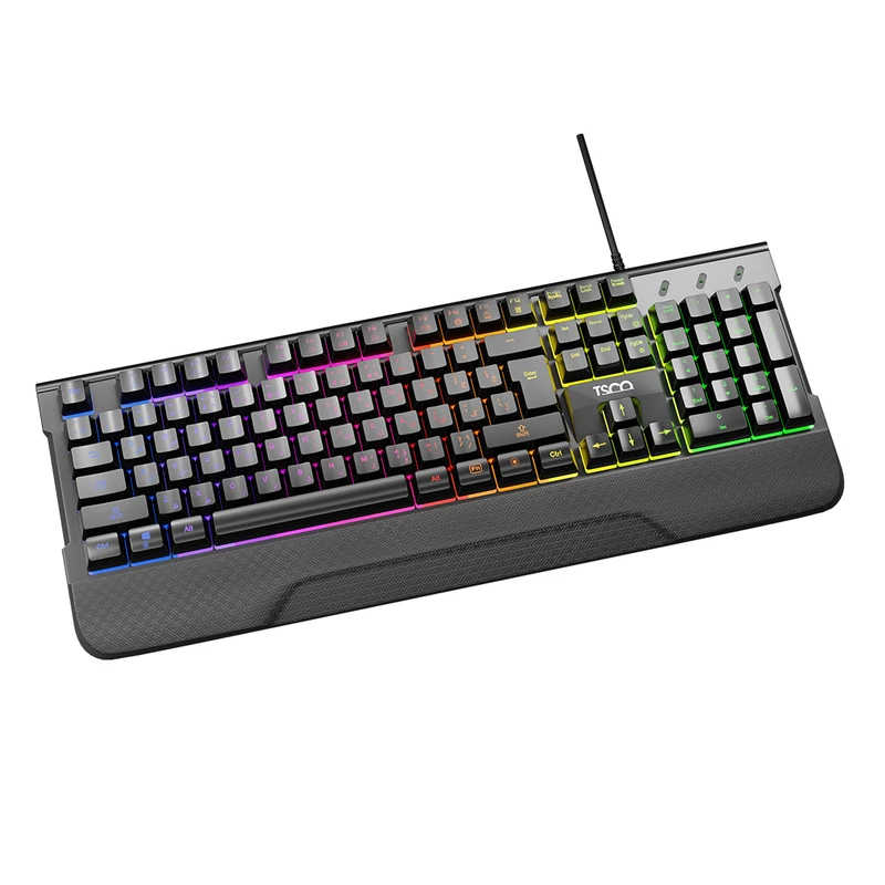 در ساختار کیبورد 104 کلیدی TK 8085 GA، از چینش استاندارد کلیدها استفاده شده تا بدون نیاز به تطبیق جدید، بتوانید با همان عادت‌های تایپی قبلی به‌راحتی کارتان را انجام دهید. علاوه بر آن، قابلیت FN+Multimedia به این کیبورد اجازه می‌دهد که با فشردن کلید Fn به همراه کلیدهای مشخص، بتوانید دسترسی سریع به تنظیمات صدا، پخش/توقف موسیقی، باز کردن ایمیل و سایر عملکردهای کاربردی داشته باشید. در دل کلیدها، از سوئیچ‌های ممبران استفاده شده که برای تایپ‌های طولانی، صدای ملایم و حرکت روانی فراهم می‌کنند. این نوع سوئیچ، به‌خصوص در محیط‌های اداری یا شب‌هنگام، از لحاظ صدا و فشار روی انگشت، بهترین تعادل را ایجاد می‌کند. علاوه بر این، با تحمل ۱۰ میلیون ضربه برای هر کلید، طول عمر بالای این کیبورد تضمین شده است،یعنی سال‌ها می‌توانید بدون دغدغه از استهلاک، از آن استفاده کنید. یکی از شاخص‌ترین ویژگی‌های TK 8085 GA، نور پس‌زمینه‌ی LED Rainbow است. این نورپردازی نه فقط جلوه‌ای متفاوت و زیبا به محیط کاری شما می‌دهد، بلکه در نور کم یا شب، به خواناتر شدن کلیدها نیز کمک می‌کند. این مدل از طریق کابل 1.8 متری با پورت USB به سیستم متصل می‌شود،طول کابلی که آزادی عمل کافی برای چیدمان‌های مختلف میز فراهم می‌کند. کیبورد تسکو مدل TK 8085 GA با تمام نسخه‌های ویندوز، سیستم‌عامل‌های لینوکس، اندروید و macOS سازگار است. این یعنی در هر محیط کاری یا آموزشی، بدون دغدغه‌ی ناسازگاری، می‌توانید آن را به سیستم وصل کنید و شروع به کار کنید. با ابعاد 442 در 176.7 در 33 میلی‌متر، این کیبورد در دسته‌ی مدل‌های فول‌سایز قرار می‌گیرد، اما فضای اضافی اشغال نمی‌کند. وزن 532 گرمی این کیبورد، آن را به‌اندازه‌ای سنگین کرده که روی میز ثابت بماند و با هر حرکت ناگهانی جابه‌جا نشود، اما آن‌قدر سنگین نیست که در حمل‌ونقل یا جابه‌جایی‌های روزمره مشکل‌ساز شود. بدنه‌ی کیبورد از پلاستیک فشرده ABS ساخته شده؛ متریالی که در برابر فشار، خراش و تغییر رنگ مقاومت بالایی دارد. سطح کیبورد مات طراحی شده تا اثر انگشت و لک را به حداقل برساند کابل 1.8 متری با روکش PVC نه‌فقط از نظر دوام قابل‌اعتماد است، بلکه طراحی محل خروج کابل از بدنه طوری انجام شده که فشار مستقیم به پورت وارد نشود.