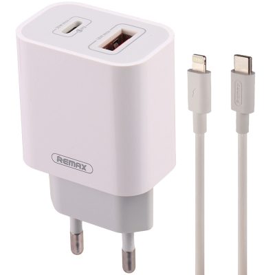شارژر دیواری 20 وات 2 پورت ریمکس مدل U68 به همراه کابل PD لایتنینگ به Type-c
